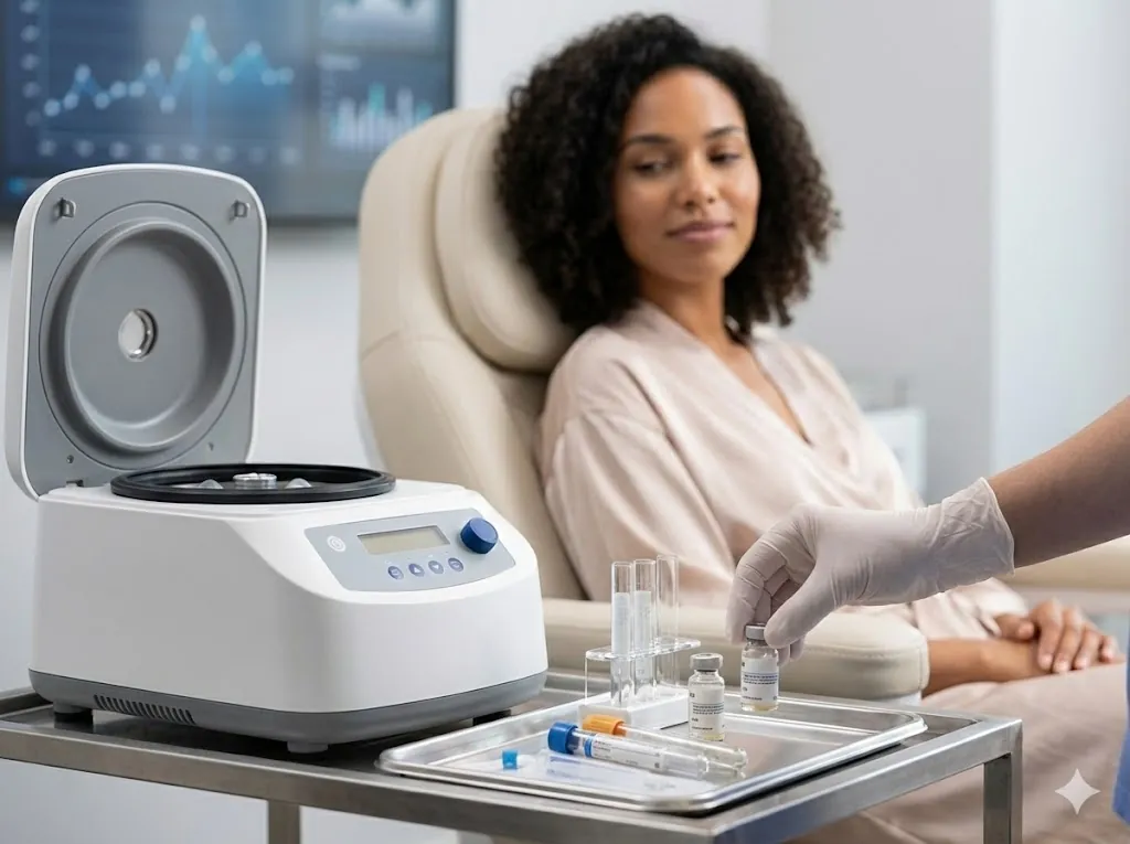 Using a Health Canada licensed centrifuge, we separate the healing platelets from red blood cells.
